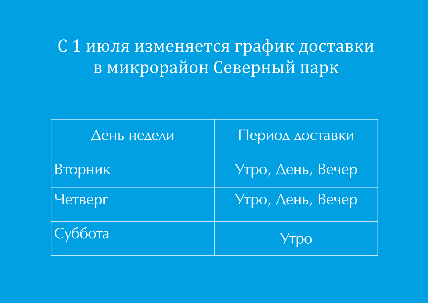 С 1 июля изменяется график доставки в Северном парке