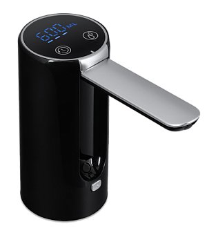 Аккумуляторная перезаряжаемая помпа для воды Ecotronic PLR-660 black-silver со съемным основанием. Устанавливается на бутылку 19 л или со съемным основанием на столешницу с удаленным забором воды с помощью гибкой трубки.