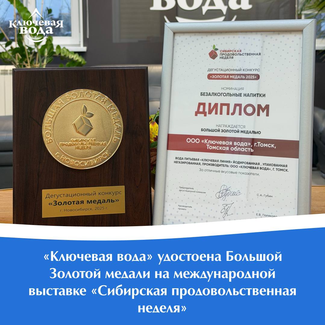 Йодированная питьевая вода торговой марки «Ключевая линия» завоевала Большую Золотую медаль в номинации «Безалкогольные напитки» на крупнейшей отраслевой выставке восточной части России — «Сибирская продовольственная неделя».