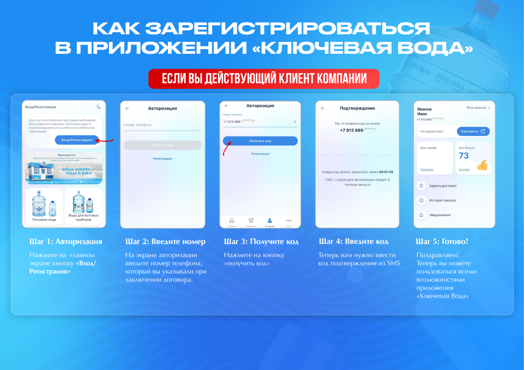 Как зарегистрироваться в приложении «Ключевая вода», если вы действующий клиент компании